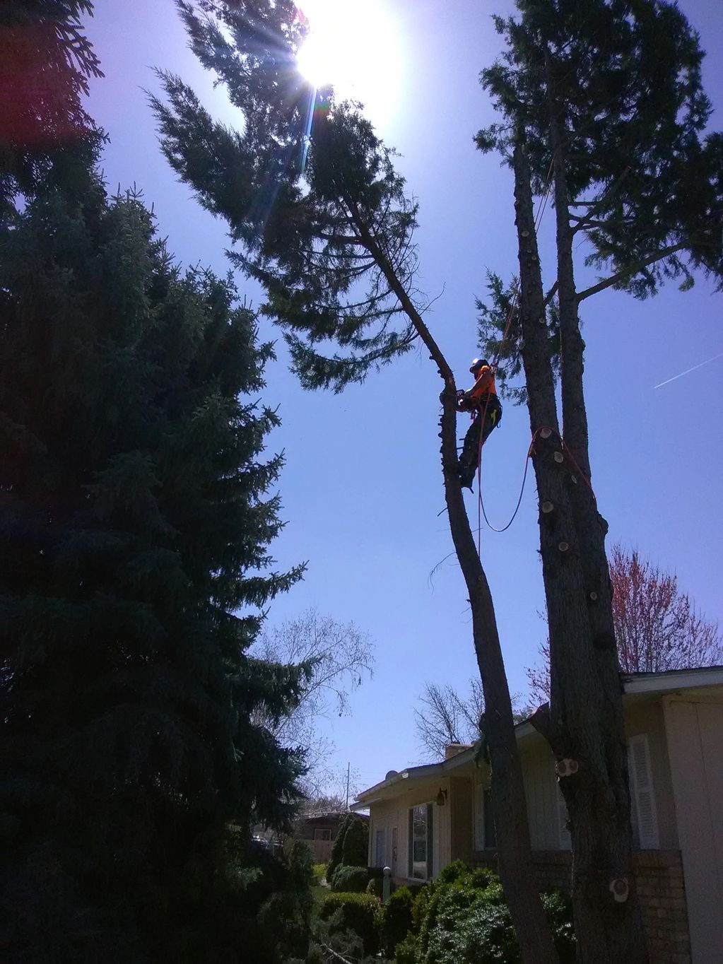 This Juniper had grown against the eave of the house and was causing damage. We removed it safely and efficiently. When planting a tree, it's important to consider the genetic potential of the tree to grow large over its lifespan. Location is critical to the longevity of a tree being sustainable. When and where to plant trees are critical factors to their success and function in your landscape.